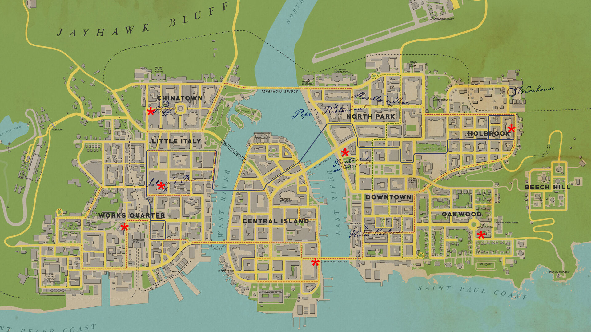 But there was a second map in the game, the countryside. 1 neighborhoods 2 landmarks 3 residences 4 buildings and businesses 5 media 6 outside lost heaven 7 map empire bay (mentioned) havana (mentioned) los ondas (mentioned) new bordeaux (mentioned) Some are story exclusives, some are found in free ride (free roam). Definitive edition comic books guide — chapter 20, moonlighting. Welcome to the mafia 1 remake / remaster definitive edition trophy guide! 1:06:14 minutes from end to end! We were unable to load disqus. Save my name, email, and website in this browser for the next time i comment. Comparing map sizes from all mafia games: Each story chapter (20 total) unlocks a trophy just for completing it. A free roam guide map for all kinds of collectibles in mafia: Once the sun is down in mafia: Use the progress tracker to get 100%!